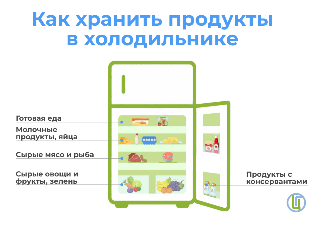 Приготовленные дома продукты можно хранить в холодильнике, используя правила для продукции общественного питания.
